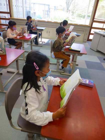 1年生の時、音読はきちんと両手で本を持つという指導が徹底されており、その指導がきちんと生かされています。ですから姿勢もとてもよいです。