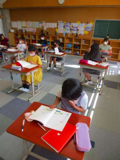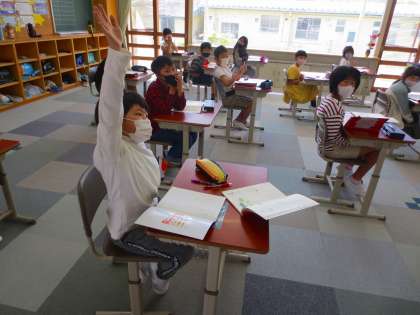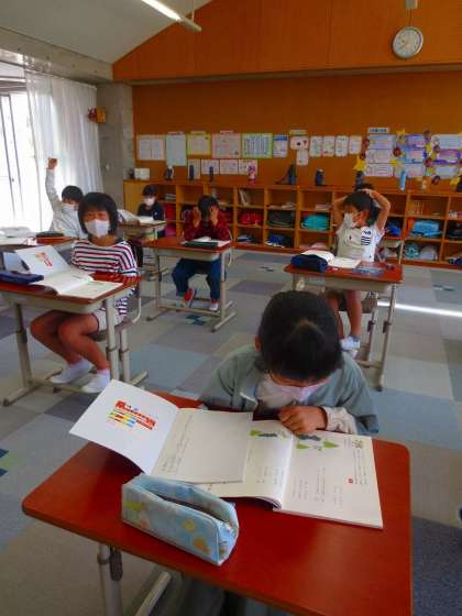 国語をやっていました。課題に対してわかった子はぱっと挙手します。わからない子は一生懸命、読み解きます。やる気があるいい授業でした。
