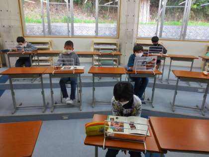 5年生も4年生同様に音楽でした。改めて音楽とはどういう教科なのかという話を聞いています。ただ単に音を楽しむだけでなく、西洋音楽と和音楽のちがいとか、音楽の背景にあるものを知ることも大切だよと言われていました。