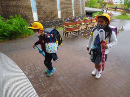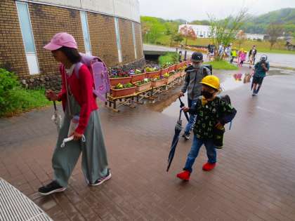 品野台の児童は傘のたたみ方がとても上手なので、それを撮影しようと思っていたら、登校時には雨が上がり、傘を使わずに済みました。よかったです。