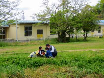 あおばさんは、外で草むしりをしつつ、花の名前や小さな昆虫の名前を調べていました。私が行くと「しろなつめぐさ」や「ひめおどりこそう」を教えてくれました。3人で仲むつまじく座っていて、良い雰囲気です。