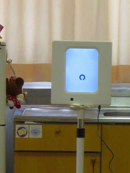保健室では視力検査を行っています。今の視力計は、一文字ずつでてくるのですね。それも内部に灯りがあるので、暗くありません。