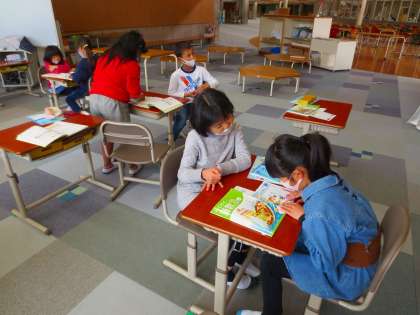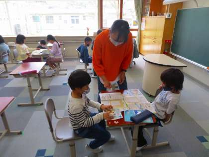 2年生で習った九九の復習を教科書を使ってゲーム的にやっていました。