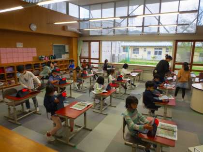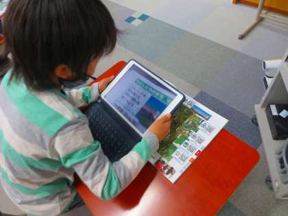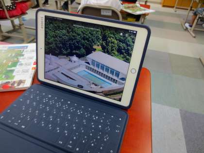 あらら、3年生もタブレットです。カメラを使っている子もいますし、あらま本校が画面に映っています。なんで??