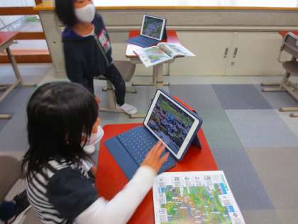 そして3枚目。実は今年度リニューアルした副読本「せと」にQRコードが載っていて、それを画像で読み取ると学校周辺を見ることができるのです。副読本もデジタル対応が進んできました。