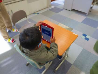 あおばさんは、今日はタブレットを使用して学習です。学年が違い、内容も違うのでマンツーマンで指導します。