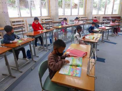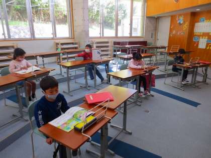 2年生は音楽です。音楽の授業は1年生の担任が行いますので、つい3月までは当たり前だった光景です。でも久しぶりなのでとても懐かしい気持ちになりました。