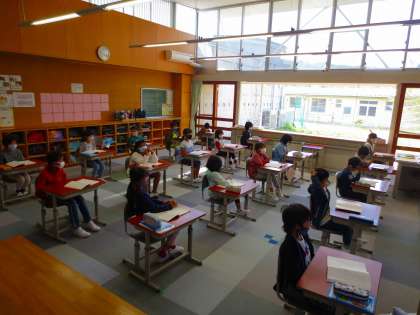 黒板をみてわかるように、じっくりと考える内容です。こういう授業はなかなか思いつきでは挙手ができません。時には一度も挙手できないこともあります。じっくりと考える力とはこういう授業で身につきますので、とにかくうーんと考えることが大切です。
