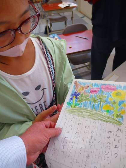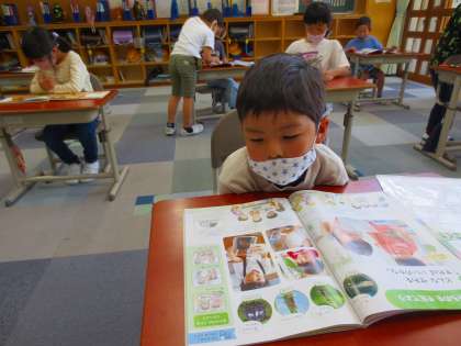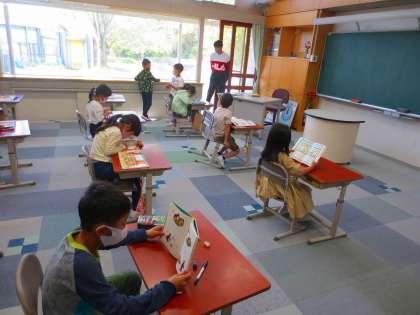 これは朝の会の時間です。日記を書いている子、本をじっくり見ている子などいろいろですが、共通しているのは集中していることです。この時間に集中できないと、体調が悪いとか、家で嫌なことがあったとかが考えられます。そういう心身の状態も担任は見ています。