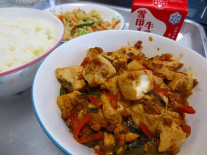 私の大好きな麻婆豆腐です。赤味噌ベースで、レシピも知っていますが、実はレシピには載っていないある食材が入っています。