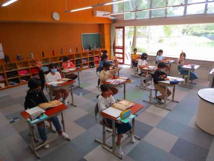 6年生は社会です。縄文や弥生時代の年代の学習です。ソーシャルディスタンスで参観して頂きありがとうございました