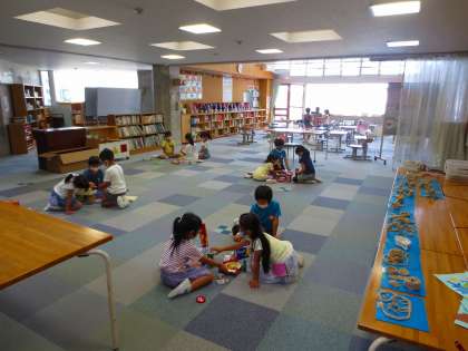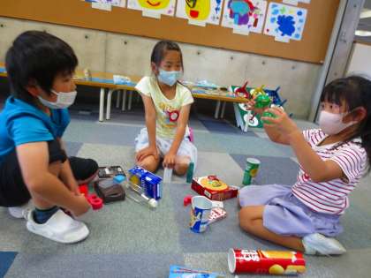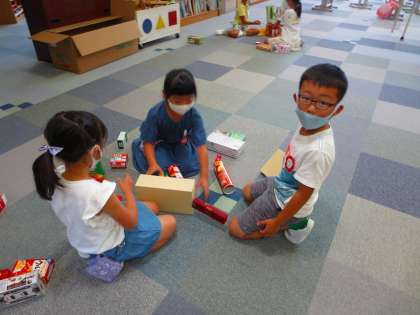 各自が持ち寄った空き箱を組み合わせて、共同で作品を作ります。