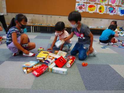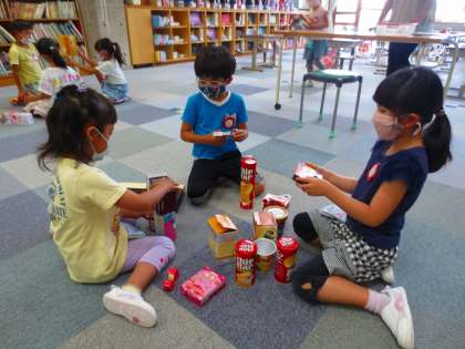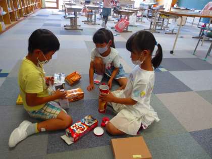 立体の概念をこれから学ぶのに、まずは実際の生活のなかにある立体物を触れることで考えやすくしようというねらいでしょうか。