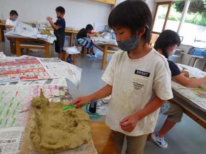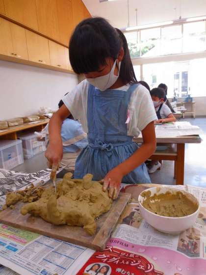 今日から粘土制作が始まります。最初は3年生です。「鬼の顔」がテーマで、3時間かけてしっかりと作品を作りました。