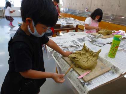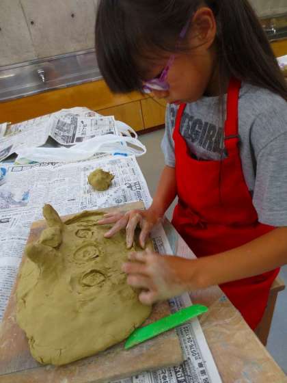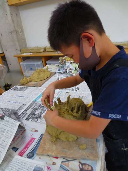 今日もとても暑いので、粘土からどんどん水分が蒸発していきます。水分を粘土に足しながら粘り強く作っていました。