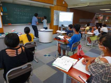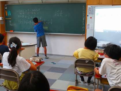 自分の考えを前で発表しています。一人が発表すると、ちがう子が違った考えを発表しています。解き方にはいろいろあることが当たり前になってきましたね。