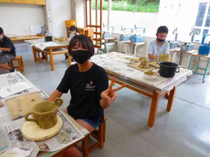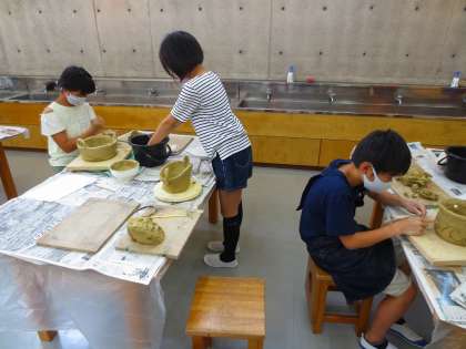 6年生のテーマは「つぼ」のようです。まずはつぼの形を作るのに一苦労です。そして各自のイメージするつぼにしあげています。