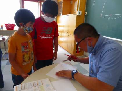 「平行」と「垂直」を意識し、長方形を紙に描いています。