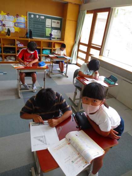 いつもはノートに描きますが、ノートは方眼になっているので、平行も垂直も方眼の線を使えば簡単に描けます。この時間では全くの白紙でトライしています。