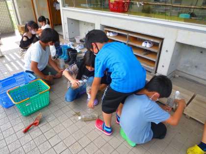 社会科で浄水場の学習をし、水をきれいにする仕組みを知りました。今日は自分で水をきれいにするチャレンジをします。