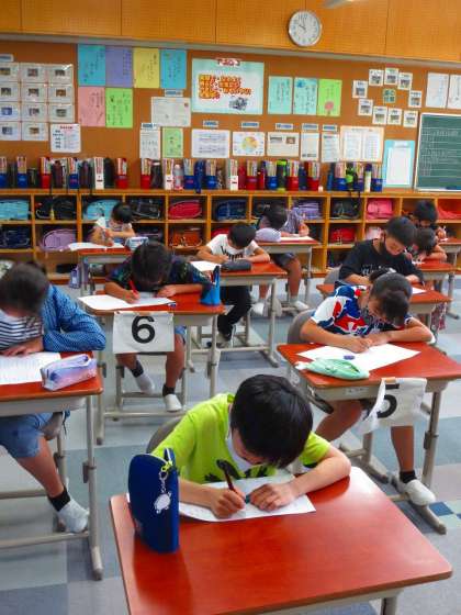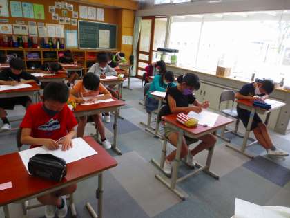 がんばりテストというだけあって、雰囲気が締まっています。この日に向けて練習を繰り返して、問題も事前にわかっているので、なんとかいい結果となり、自信に結びつけてほしいと思います。