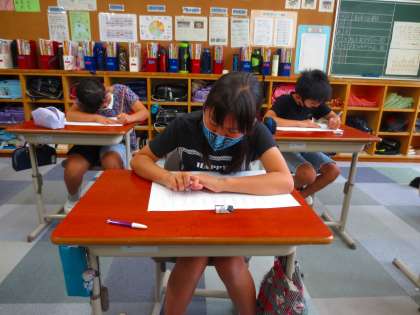 今日は漢字のがんばりテストの日です。テストの様子を5年生で撮影しました。