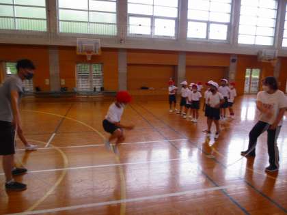 大縄跳びをしています。昨年度、1年生の時に担任が一人一人のスピードに合わせて、必死に縄の速さを調整していたのを思い出し、あれから1年経ってずいぶん自力で跳べるようになったもんだなぁと思いました。