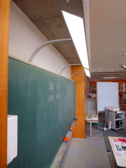 3枚目・黒板を照らす伝統も乳白色のフィルターがあり、光が拡散するようになっています。もちろん、黒板は高さが調節できます。