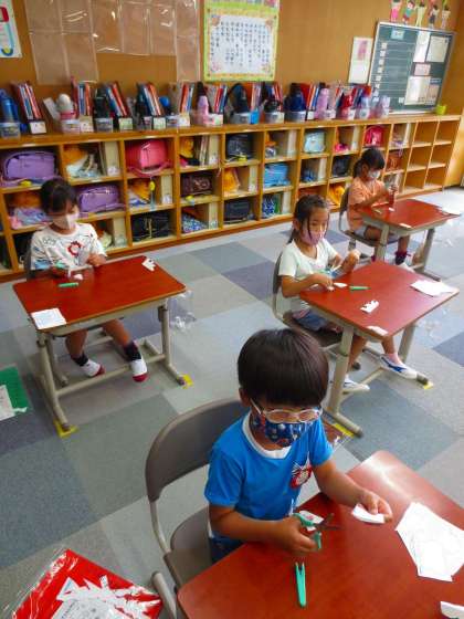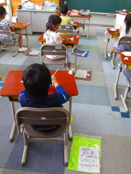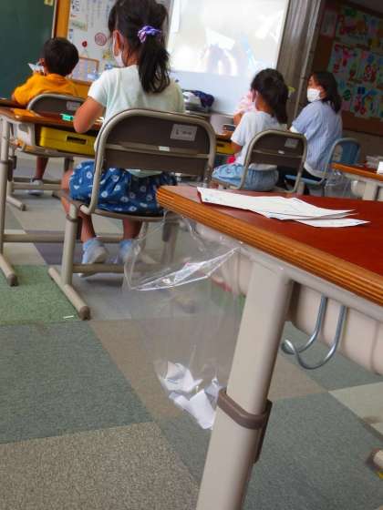 紙ゴミは、机の横につれてあるビニール袋に入れます。
