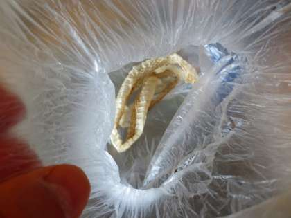今日は、さなぎになりかけのアゲハチョウの幼虫、そして蛇の抜け殻でした。