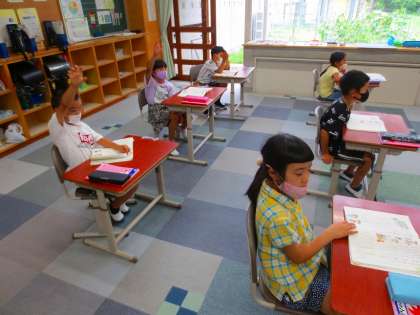 午後ですが、とても生き生きと頑張って学習しています。それは話の話題が、自分たちが採集していたヤゴについてのことだからです。担任の質問に次々と挙手があり、学習が進められていました。
