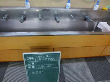以前からお知らせしているように、手洗い場やトイレの自動水栓の工事が始まりました。