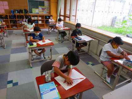 棒グラフの学習です。きちんと定規を使ってはいるのですが、マス目にきちんと合わせて描けるといいのですが、どうしてもずれてしまうようです。
