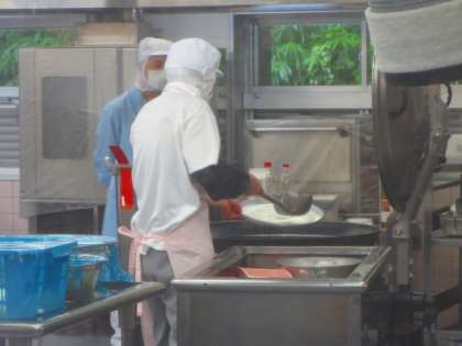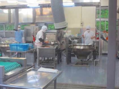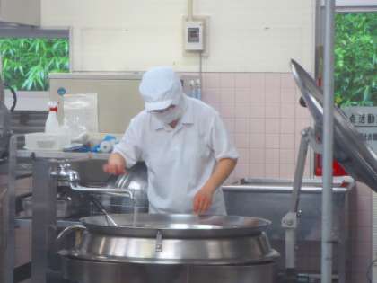 久しぶりに調理室を覗きました。ちょうど大鍋で煮込んでいる最中のようです。