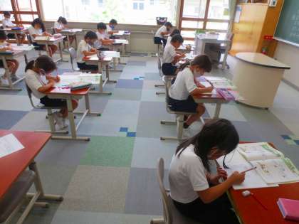 この時間の3年生は、格段に集中しています。なぜかはわかりませんが、担任もすごく褒めていました。頑張るから褒められる。褒められるからさらに頑張るという相乗効果ですね。