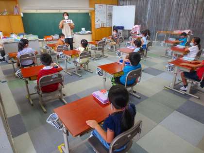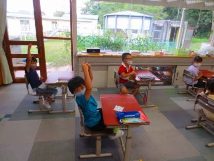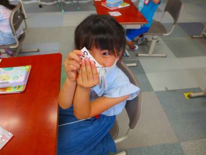数字カードを使って、一ケタ+一ケタの計算練習をしています。