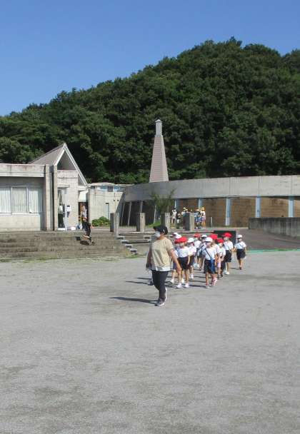 1年生が運動場に入ってきました。日頃の学校生活の様子がよくわかります。自慢の1年生に育っています。