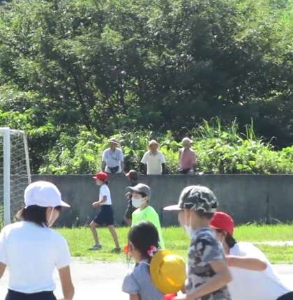 コロナ禍の久しぶりの子どもたちの歓声に,地域の方たちも足をとめてくださいました。品野台に,子どもたちのうれしそうな声が響いています。