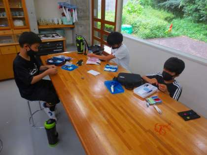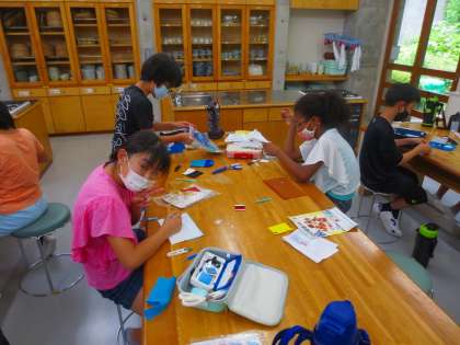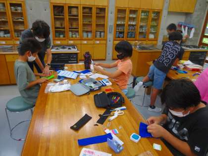 友だちの作品をチラチラ見て、参考にして、急遽自分の作品づくりに取り入れたり、縫い方を聞いたりと、とても楽しそうです。