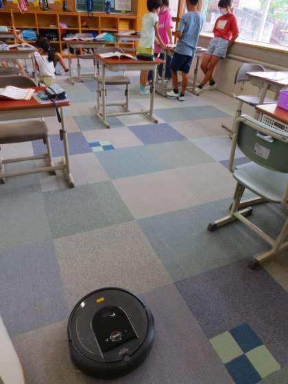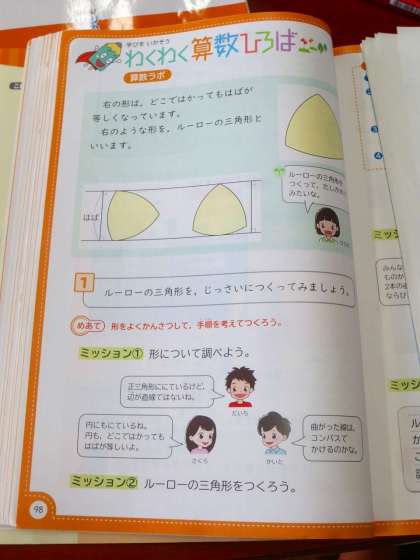 「ルーローの三角形」について学習しています。この三角形の特徴のために担任はロボット掃除機を用意していました。