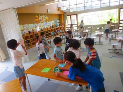 「折り紙を取ってきてね」と言われて、一目散に集まる児童、最初の児童が取り終わった頃に取りに行く児童・・・