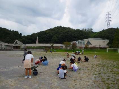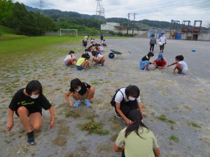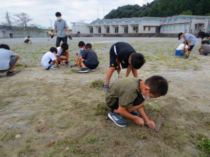 といっても計画的にやっているわけではなく、5年生が今日も草取りをしようという話になり、4・6年生もそれに反応して草取りを始めたという流れでした。