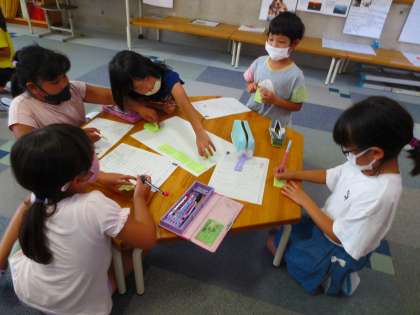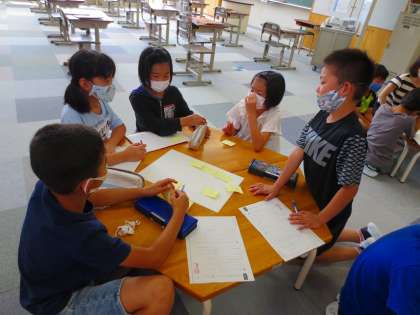 自分たちで考えて、付箋に書いて、それを集めています。