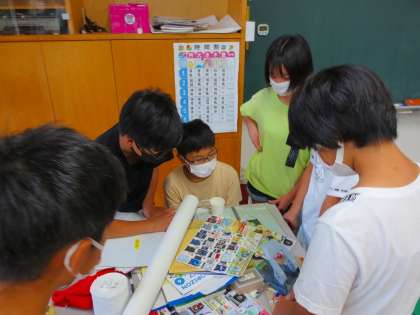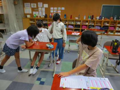 6年生は家庭科で作成するナップサックの申込書を見て盛り上がっていました。