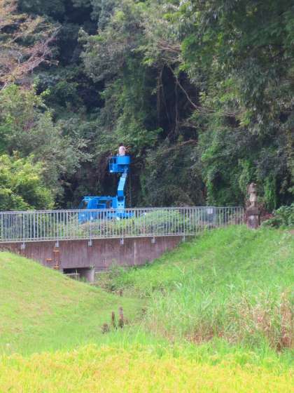 本日は市教委の方が高所作業車で、私たちではなんともならない高い枝や危険な木を伐採しています。