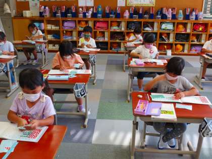 私が訪問した時には、ちょうど20を理解しいて、丸いシールとを20個貼り、10個ずつ鉛筆で囲み、10が2つで20という概念を理解していました。