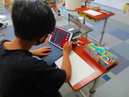 タブレットでどんなテープカッターを作ろうかとデザイン検索をします。