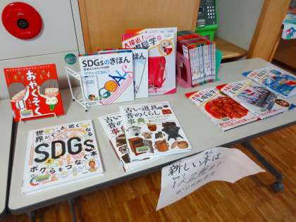 図書室の掲示が完成していました。かなり新書は借りられているのですが、SDGa関連の本もあり、学習に役立ちそうですね。