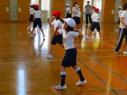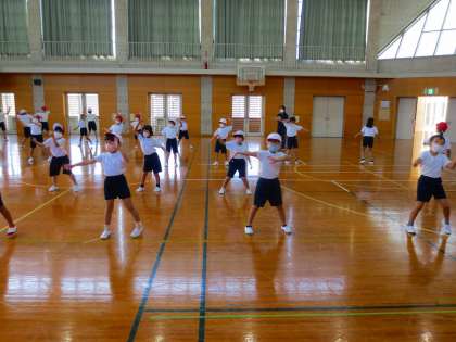 授業の最後に通しで踊りました。まだ日にちはあるのに、多くの子がしっかりと覚えいるのに感心しました。これからは隊形移動なども覚えて行くことになります。