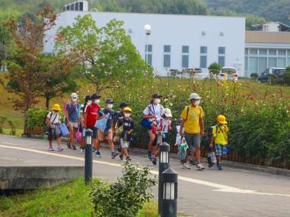 おおむね列をきちんと整えて班長が先頭であるいてきます。